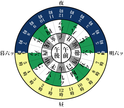 日の出と日没の時間を基準に一日を12刻に分けた不定時法である。